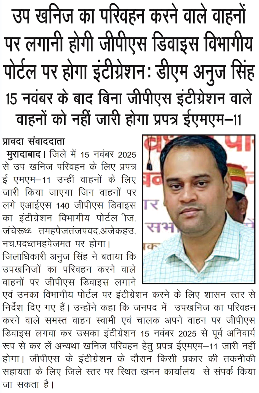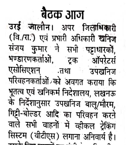 खनिज विभाग, उ०प्र० द्वारा जल्द ही खनिजों के वैध खनन/परिवहन को बढ़ावा देने के
